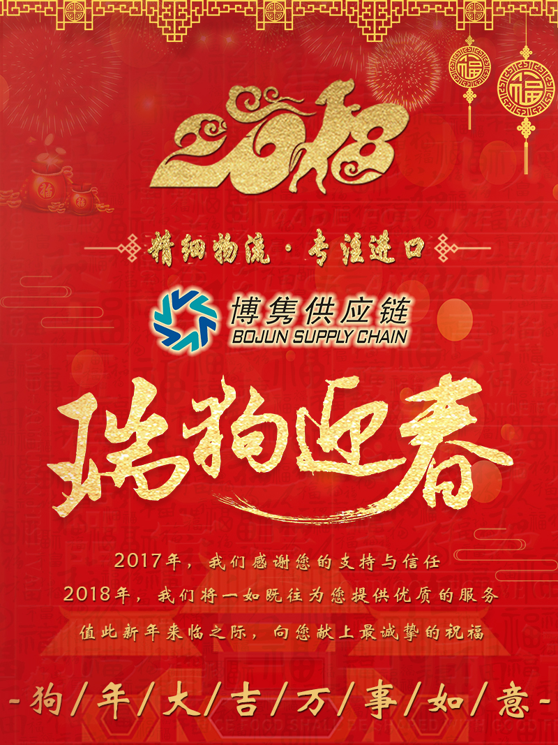 博裕食品進口報關&博雋進口作為一站式進口報關供應商,多年來我們一直堅持“精細物流,專注進口”的公司理念。以專業的進口操作方案、持優質的服務,與業界一起書寫精彩篇章。值此佳節之際,博裕&博雋進口向業界致以美好的祝愿,祝大家在新的一年里:事業興旺、和氣致祥、身體健康、家庭康泰,萬事如意!