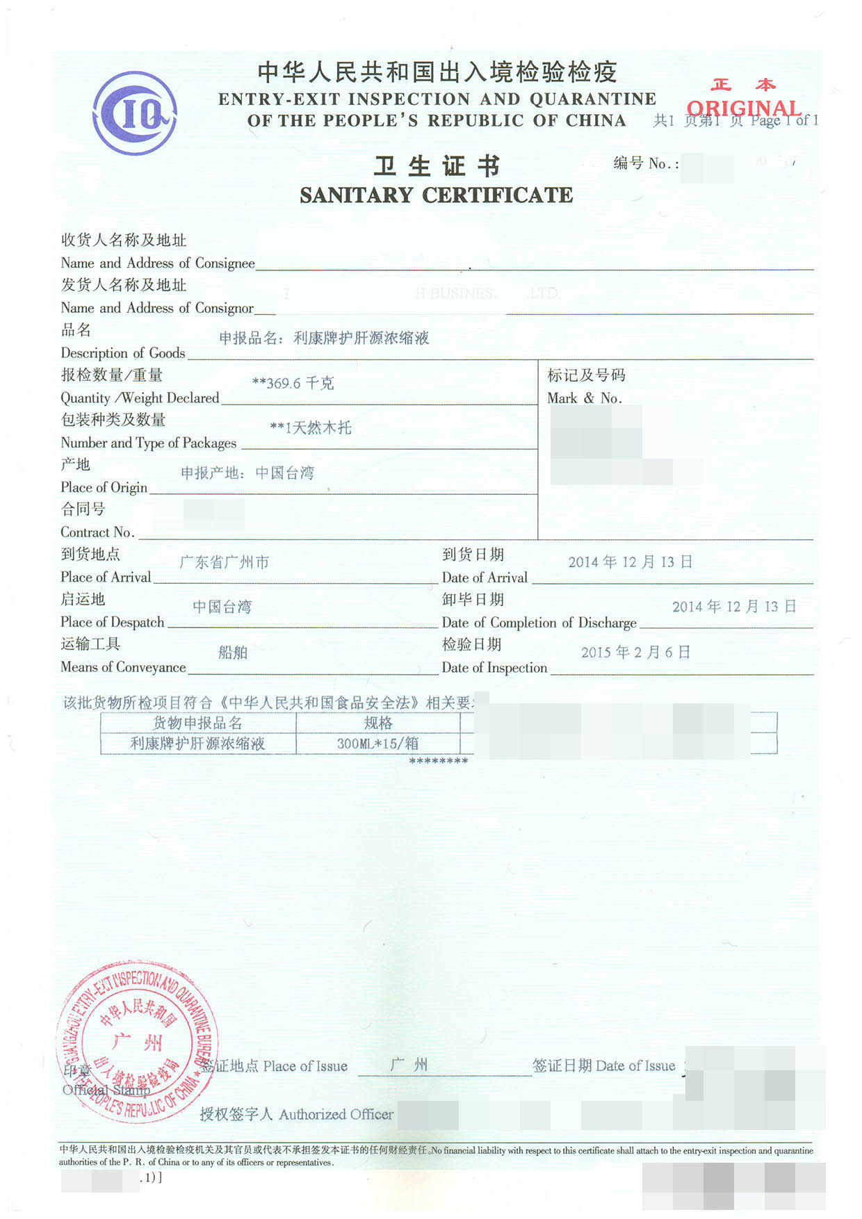 - 內(nèi)容摘要 : 進(jìn)口日期:2014-12-14 客戶:深圳市某有限公司 操作貨物:濃縮液 原產(chǎn)地:臺(tái)灣 貿(mào)易方式: 一般貿(mào)易 啟運(yùn)國(guó): 臺(tái)澎金馬關(guān)稅區(qū) 進(jìn)口口岸:廣州 ...