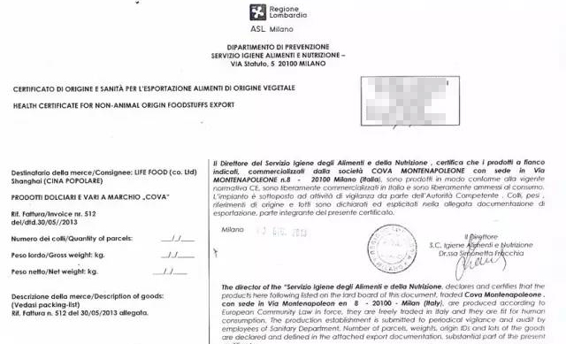 商檢要求:原產地證、營養成分檢測報告、中/英文標簽