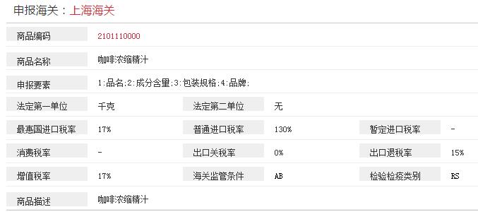 咖啡的稅率: