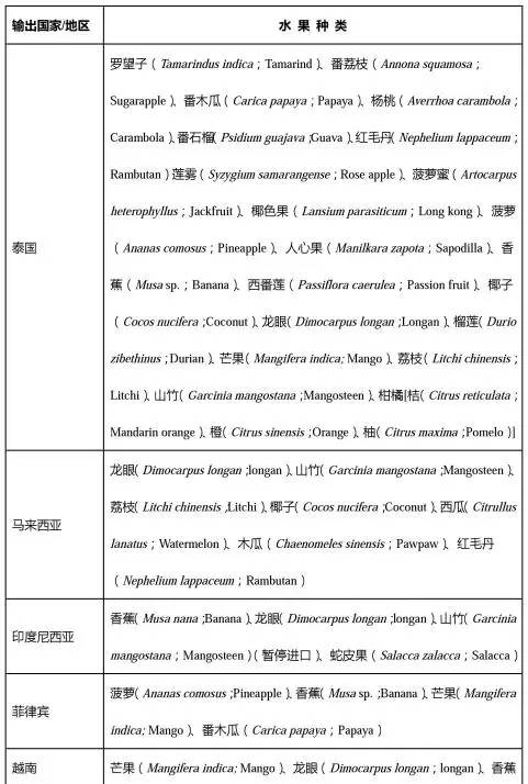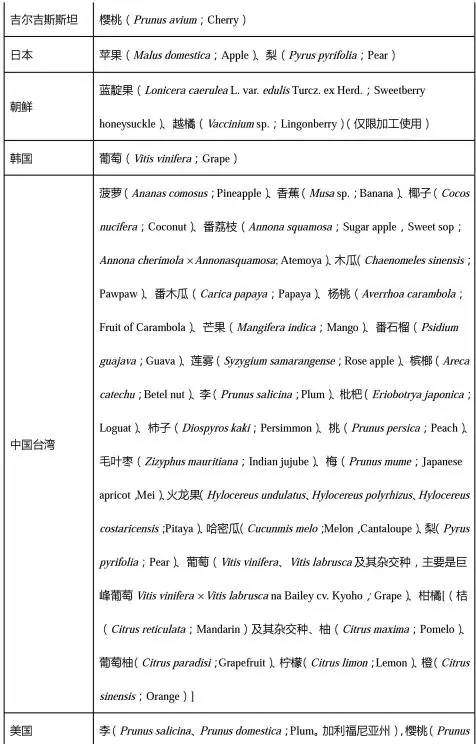 (2) * 已簽訂議定書,但未完成準入程序,目前暫不能進口。
