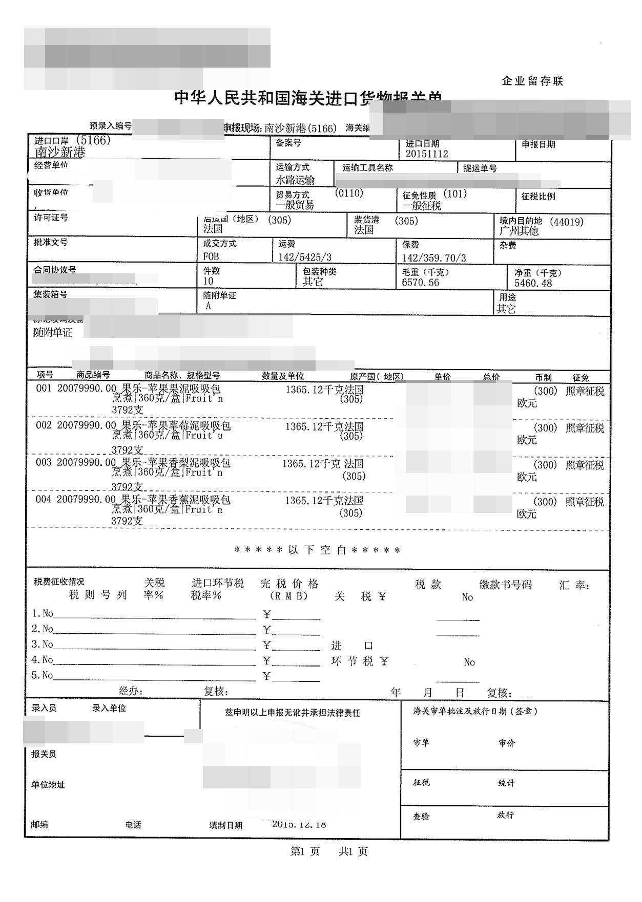 四、果泥進口案例貨物的詳細(xì)信息: